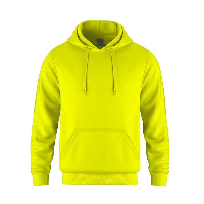 280 gsm - 8.3 oz./yd² – 14 oz./lin. yd 65% polyester, 35% cotton fleece. 3 ply fleece, Self fabric lined hood with drawcord. Rib knit cuff and hem with spandex. Kangaroo pocket. Tear away label. Surcharges apply at 2XL and larger. Note: INTENSE COLORS.
