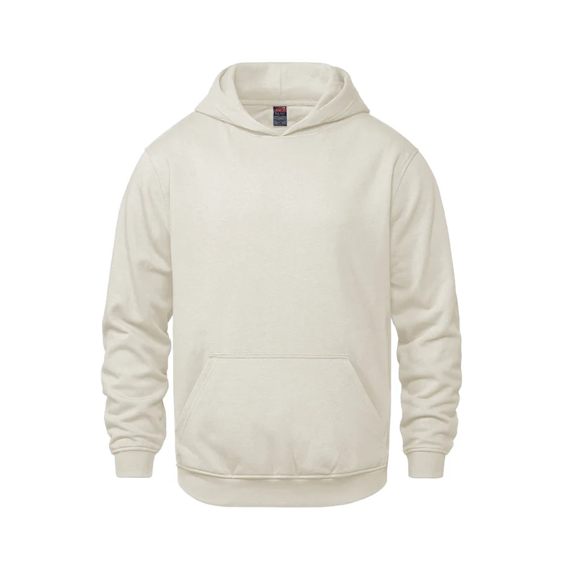 280 g/m² – 8.3 oz./yd² – 14 oz./lin. yd (solids) 70% cotton, 30% polyester fleece (heathers) 60% cotton, 40% polyester fleece. Self fabric lined hood with drawcord. Rib knit cuff and hem. Kangaroo pocket. Tear away label. DTG – direct to garment printer friendly.