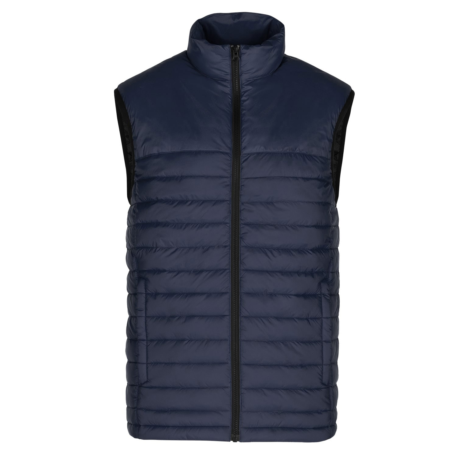 37 g/m2 – 1.1 oz./yd2 – 2 oz./lin. yd 100 nylon taffeta with water repellent finish. Insulation: lightweight 100% recycled polyester. YKK front zipper. Zippered side entry pockets.  Zocket embroidery access. Black elastic binding at armholes.
