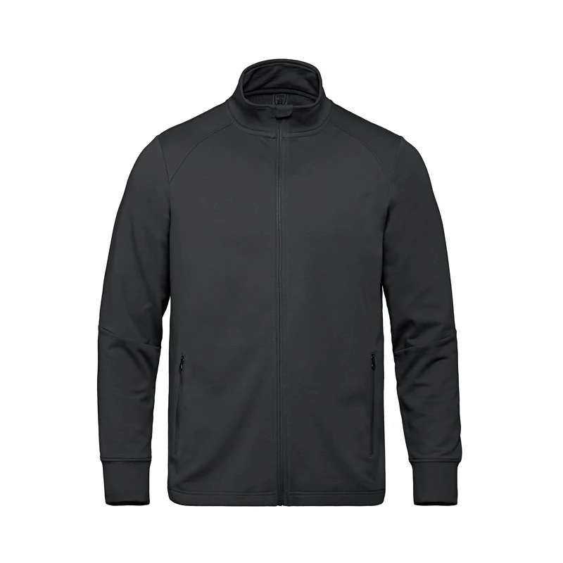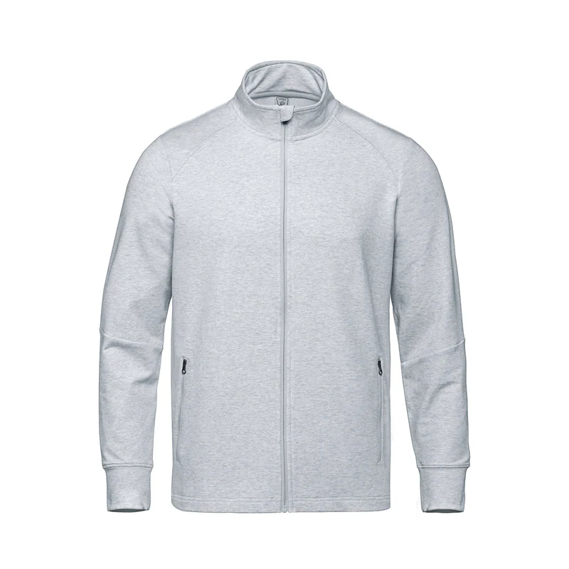 275 GSM - 8.1 oz/yd2 - 13.5 oz/lin. yd. 64% cotton, 30% recycled polyester, 6% spandex. Stretch french terry with wicking and anti-bacterial finishes. YKK front zipper and lower pocket zippers. Front and back shoulder yoke seam detail. Self-fabric sleeve cuff. Seam detail on sleeve at elbow. Knit back neck tape, tear-away label.
