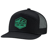 Buckram laminated front panels with pro-stitch, flat peak with 8 rows of stitching, plastic adjustable back strap (S1).