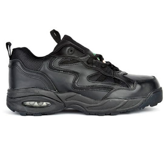 Leather uppper, steel toe and steel plate grade 1 approved. ESR. Rubber/EVA Airbag outsole. Wide.