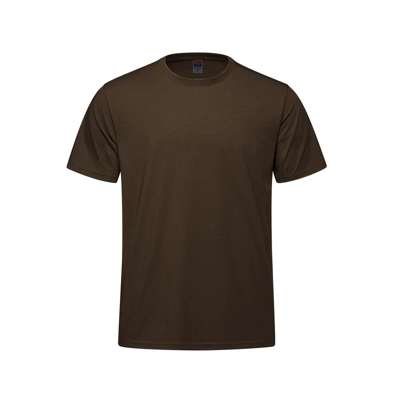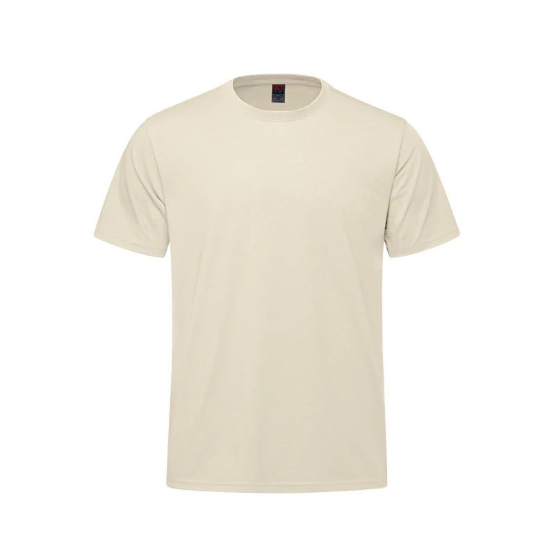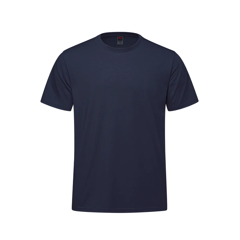 180 gsm – 5.3 oz./ yd² – 9 oz./lin. yd. 50% cotton, 50% polyester jersey Rib knit neckline with spandex for shape retention. Jersey knit back neck and shoulder tape. Tear away label. Side seamed.