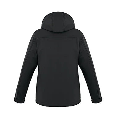 300 g/m2 – 8.9 oz./yd2 – 15 oz./lin. yd 100% polyester mechanical stretch softshell bonded with micro fleece 8000 mm waterproof rating, 800 gsm breathability rating, wind resistant and water repellent finish. Insulation: 100 g/m2 body, 80 g/m2 sleeves 100% recycled polyester. YKK reverse contrast color coil front zipper closure. Outer pockets with YKK zipper closure. Removeable hood with adjustable draw cord. Drop tail hem with adjustable draw cord. Inner fleece sleeve storm cuff with outer adjustable hook and loop tab closure on cuffs. 2 inner pockets with hook and loop closure. CX2 tonal printed logo tafetta lining.