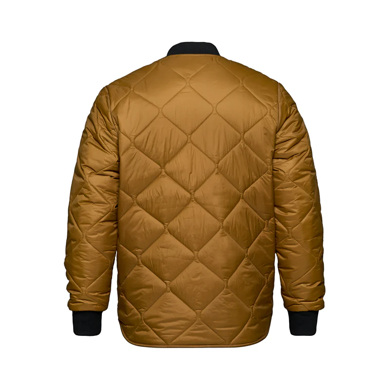 37 gsm – 1.1 oz./yd² – 2 oz./lin. yd 100% nylon taffeta with PFAS free water repellent finish. Insulation: 140 gsm 100% recycledpolyester. Black rib knit collar and YKK front zipper and zippered chest pocket. Lower front kangaroo pockets. Two interiorpockets. Clam Shell zocket embroidery access. Drop tail back hem.